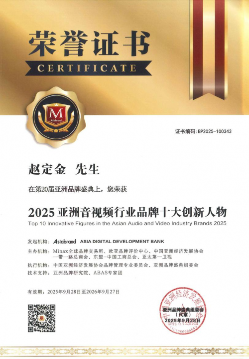 这场由专业品牌评价机构Asiabrand和亚洲数字发展银行(ASIA DIGITAL DEVELOPMENT BANK)发起主办,MINAX全球品牌交易所、欧亚品牌评价中心、中国亚洲经济发展协会、一带一路总商会、东盟-中国工商总会和亚太第一卫视等机构联合主办的品牌盛会,发布了覆盖20个国家和地区的 “2025亚洲品牌500强”榜单,itc保伦股份以131.96亿元品牌价值强势登榜,斩获“2025亚洲品牌500强”,itc总裁赵定金荣膺“2025年度亚洲音视频行业品牌十大创新人物”!